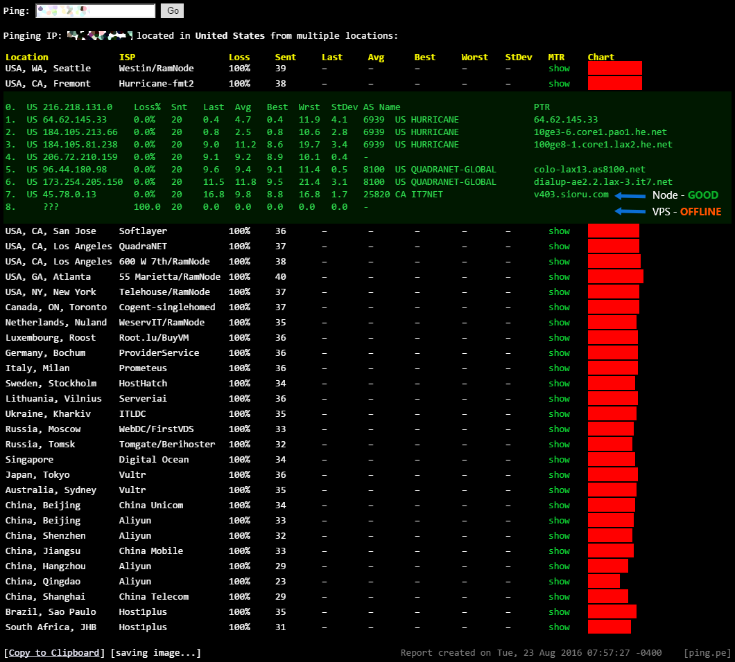 在这样的情况下,您需要完全锁定您的VPS,并且ping.pe输出如下所示: